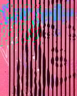 This one of a kind, original piece is a pink sprayed stencil finished with white splatters and hand drawn graffiti in blue Posca pen. Presented in a 40x50cm glass frame, this is the actual cut stencil, backed onto black card.
